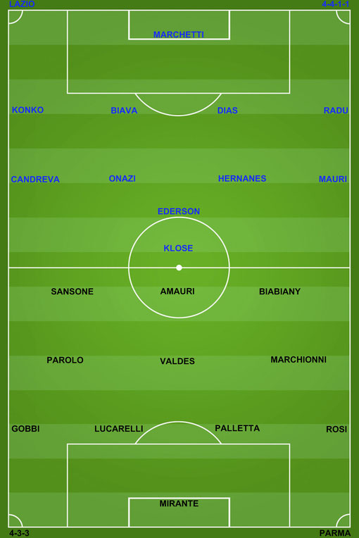 Mariga, McEachen (PAR), Cana, Lulic, Brocchi (LAZ)