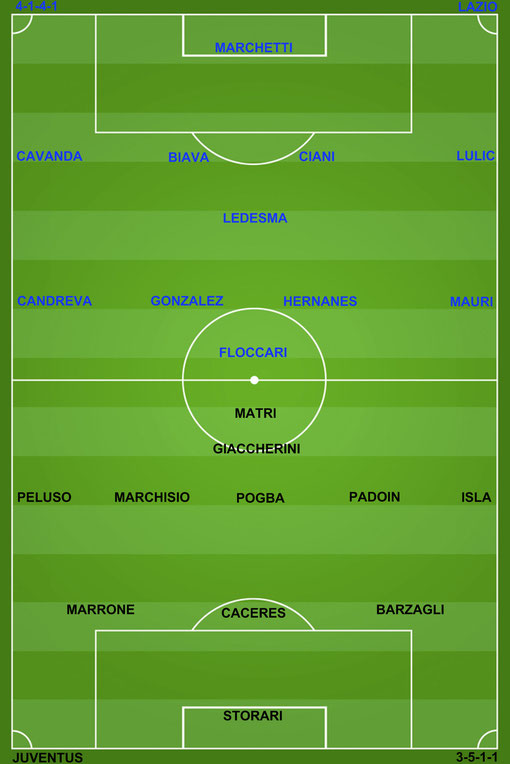 Cana, Ledesma, Mauri, Candreva, Lulic, Gonzalez, Brocchi, Hernanes