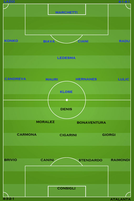 Cana, Ledesma, Konko, Biava, Dias (LAZ), Moralez, Bonaventura, Raimondi (ATA)