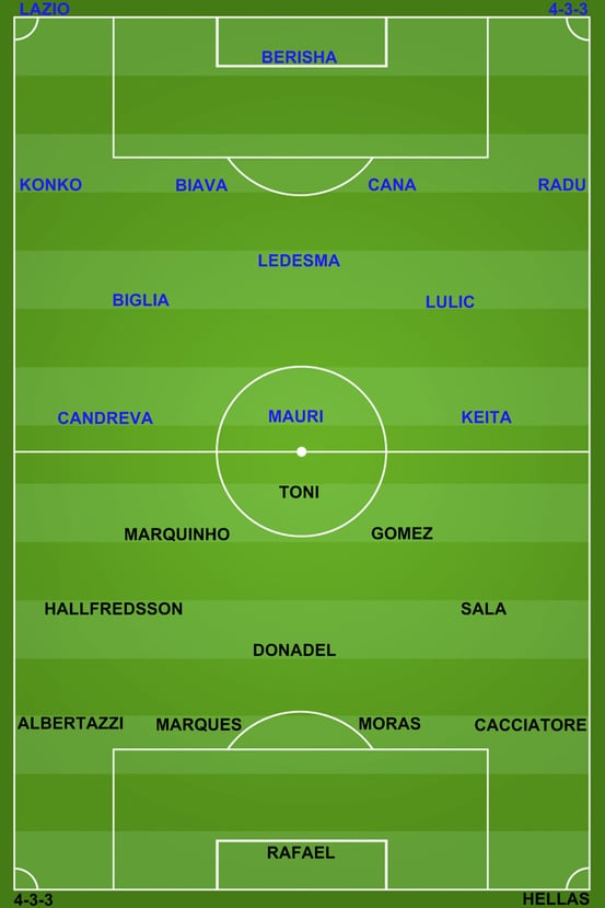 Marchetti, Ederson, Postiga (LAZ), Martinho, Donati, Jankovic, Maietta (VER)