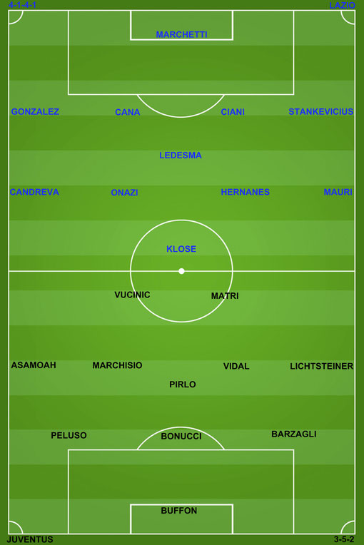Konko, Gonzalez, Cana (LAZ), De Ceglie, Pirlo, Matri, Padoin, Bonucci (JUV)